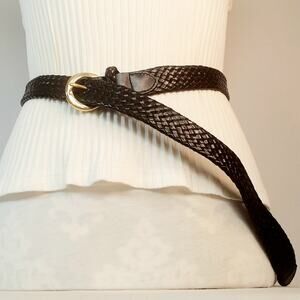 Talbots Basic Black Braided Belt Large Waist Genuine Leather Round Gold Tone Buckle