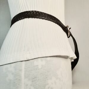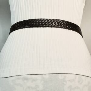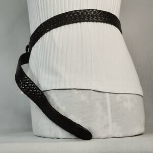 Talbots Basic Black Braided Belt Large Waist Genuine Leather Round Buckle