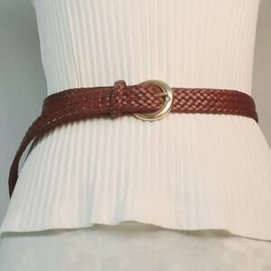 Talbots Basic Braided Belt Large Waist Genuine Leather Syrup Brown Round Gold Tone Buckle