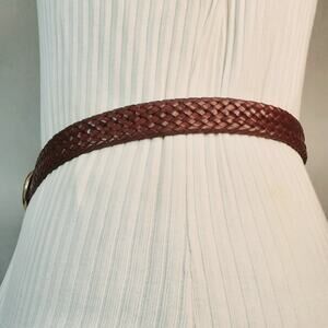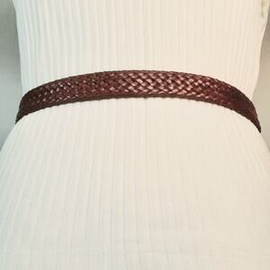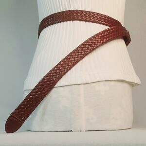 Talbots Basic Braided Belt Large Waist Genuine Leather Syrup Brown Round Buckle