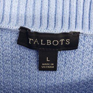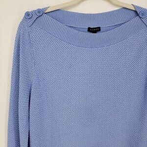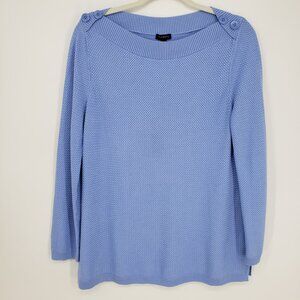 Talbots Basket Weave Knit Tunic Sweater L Bateau Boat Neck Anchor Buttons Blue