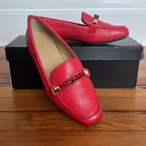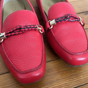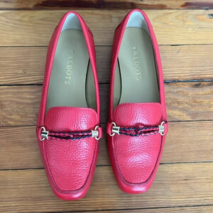 These Talbots Becca Braid Pebbled Leather Loafers in "Red Pop" have been very gently used. They have a nautical-inspired braided detail across the top of the shoe. Comes with the original box.
