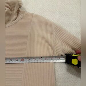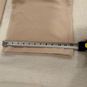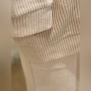 Soft beige ribbed knit lounge set from T by Talbots. Features a hoodie top and wide leg pants with deep pockets. Barely worn, like new.