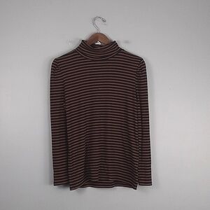Talbots Bergen Stripe Button Long Sleeve Ribbed Turtle Neck Top