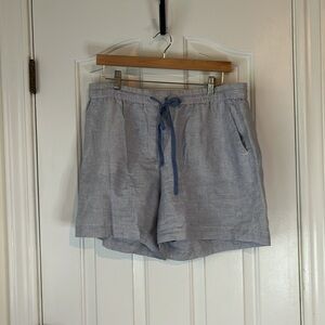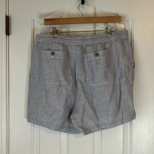 The short of the summer. Our wear-everywhere pull-on shorts are easy, comfortable and classic. Made from airy linen with an elastic waist for the perfect fit. Hits At Waist. Above Knee Length. Pull on closure. Front Slash, Back Patch pockets. These are marked as an XL petite so they have a 5" inseam and will fit slightly shorter than the model picture. In like new condition. Linen cotton blend. Lightweight and airy.