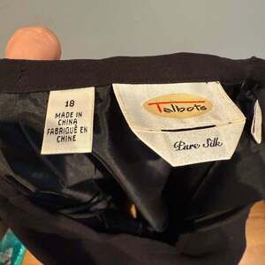 Elegant Talbots black straight skirt, size 18, made from luxurious pure silk with a polyester lining. This classic midi skirt features a flattering straight cut, ideal for professional or semi-formal occasions. It's in excellent pre-owned condition with no significant flaws. Dry clean only.