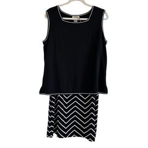 Talbots Black 3 Piece Skirt Outfit Suit Sleeveless Top & Cardigan Sweater Large