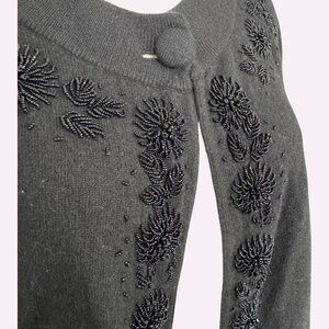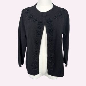 Talbots Black Beaded Wool and Angora Cardigan Size M