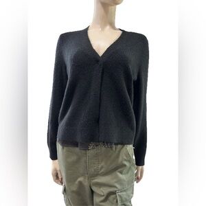 Experience the comfort and style of the Honey Punch Black Cardigan, featuring a relaxed fit and a classic V-neck design. This solid black knit sweater is perfect for layering, offering a timeless silhouette that ends at hip length. The Talbots Cardigan in black is a stylish and versatile sweater for women, crafted from acrylic material. This regular fit cardigan features a classic button-up style and is designed in size small, making it a perfect addition to any wardrobe. The timeless black color adds a sleek and sophisticated touch, perfect for layering over a variety of outfits for a polished look.