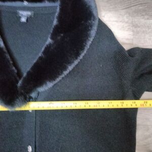Talbots Black Cardigan Sweater with Faux Fur Collar