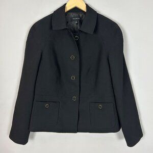 Talbots Black Classic Button Front Blazer Wool Blend Size 12 Women's