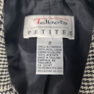 Talbots Black Cream Houndstooth Wool Double Breasted Blazer Jacket 2 P