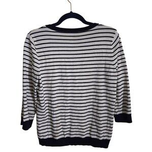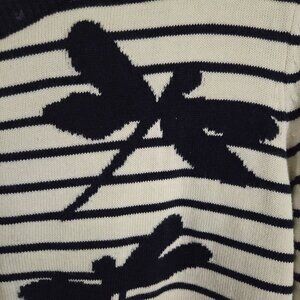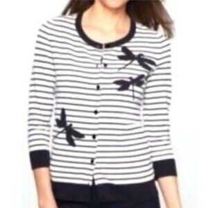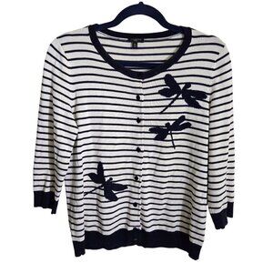 Talbots Black Cream Striped Dragon Fly Cardigan Sweater Size Mp