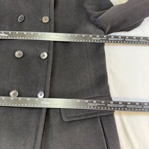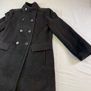 Talbots Black Double Breasted Wool Blend Coat Stand Collar Quilted Lining Size M