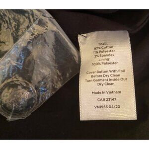 This Talbots jacket offers a sophisticated and timeless look with its double-breasted design and classic black color. Crafted from a cotton blend, it ensures both comfort and style. Suitable for professional settings, it presents a polished appearance for work or formal occasions.