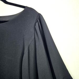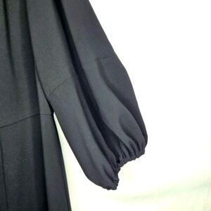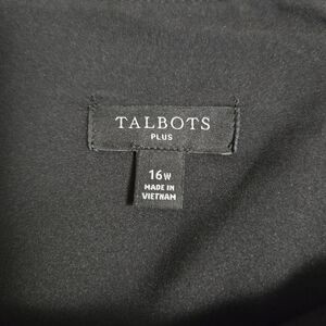 Talbots black dress. Solid black color. True deep black even though some of my photos make it look dark gray. 3/4 sleeves, round neck line, back hidden zipper and hook closure, fully lined. This is an elegant dress in like new pre-owned condition.