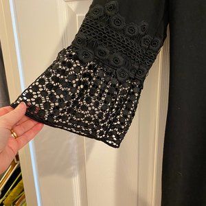 Lovely black dress with detailed bell sleeves Fits comfortably.