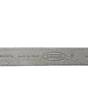 This sophisticated Talbots belt features a striking gemstone style buckle and durable embossed leather, offering both style and longevity.
