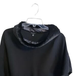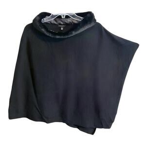 Talbots Black Faux Fur Trim Asymmetrical Hem Cape Poncho