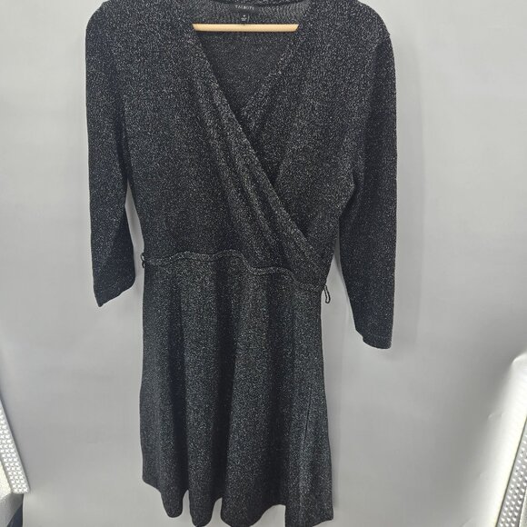 Talbots Black Glitter Merino Wool Long Sleeved Holiday Midi Dress Size Medium