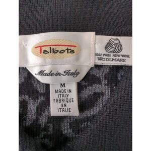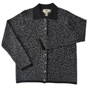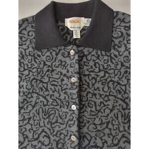 Talbots Black Gray Filigree Print Cardigan Italian 100% Merino Wool Women Size M