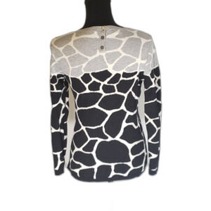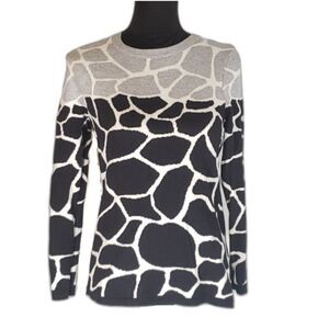 Talbots Black Gray Giraffe Print Knit Pullover Sweater Size Medium