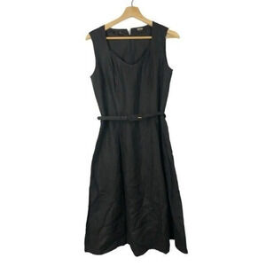 Talbots Black Irish Linen V-Neck Fit & Flare Midi Dress 4