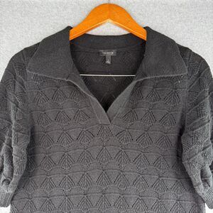 Talbot's Black Knit Short Sleeve Boxy Top Minimal Chic Quiet Luxury Sz S Preppy