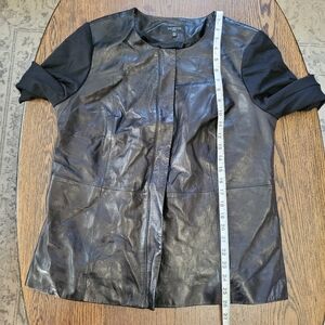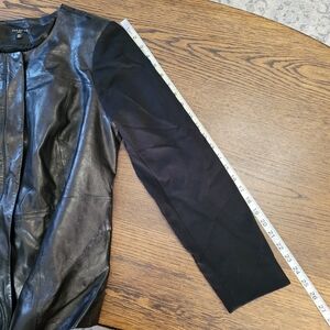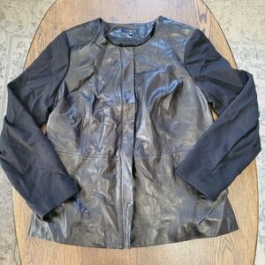 Talbots Black Lamb Skin Leather Jacket with Knit Sleeves Size Women's 12W