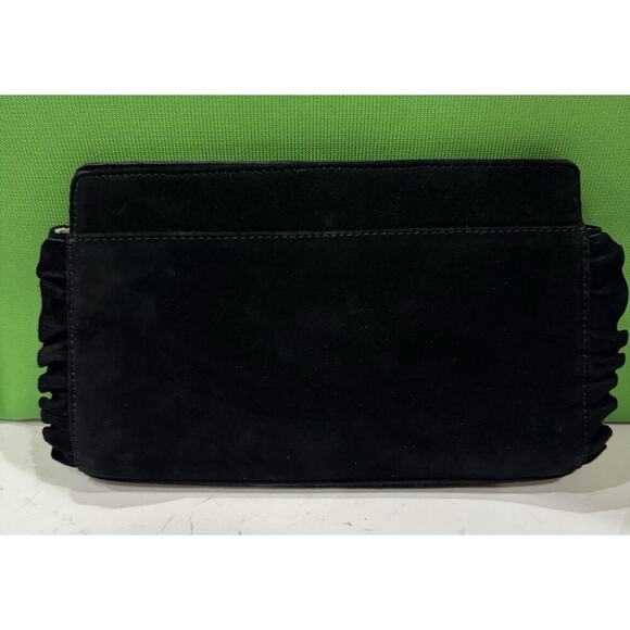 This Talbots black leather clutch is a must-have for any stylish woman. The ruffle trim adds a touch of elegance to the clutch, making it perfect for any occasion. Crafted from high-quality suede, this clutch is both durable and fashionable. It's the perfect accessory to complete any outfit. The clutch is designed to hold all your essentials, and its compact size makes it easy to carry around. The Talbots brand is known for its quality products, and this clutch is no exception.