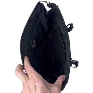 Talbots Black Leather Handbag with top zipper closure, silver hardware, like new