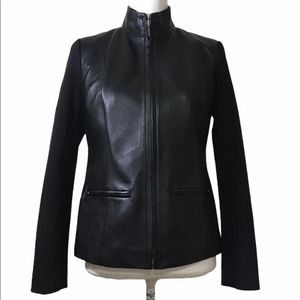 Talbots Black Leather-Front Motorcycle Jacket 2