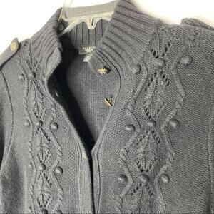 Talbots Black Military Style Pom Pom Cardigan Size Medium