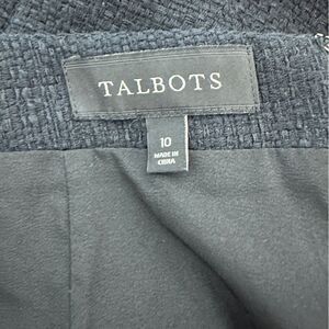 Talbots Black Pencil Skirt Unique Front Buttons Slit In Back size 10