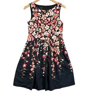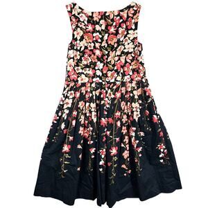 Talbots Black Pink Floral Garden Fit & Flare Pleated Sleeveless Dress 4 Petites 4P P4