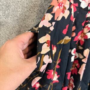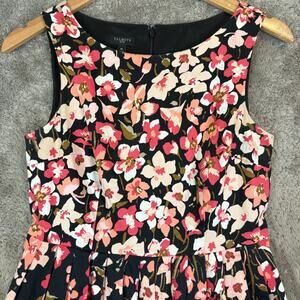 Talbots Black Pink Floral Fit & Flare Pleated Sleeveless Dress 4 Petites 4P P4