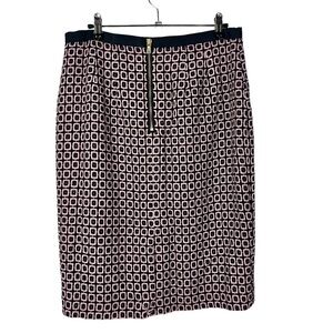 Talbots Black & Pink Square Print Tweed Pencil Knee Length Skirt 8