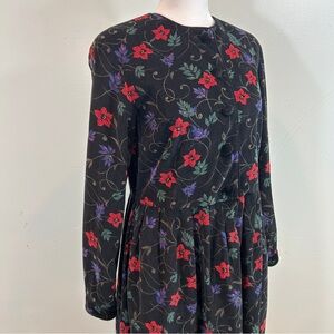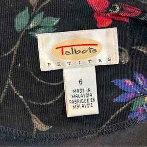 Talbots Black Red Green Floral Maxi/Midi Dress 100% Cotton Sz 6 Corduroy Velvet