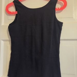 Sleek black tank with ribbed texture. Sleeveless design. Perfect for layering.
