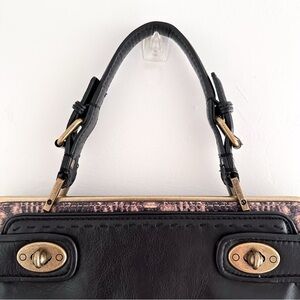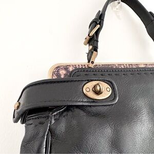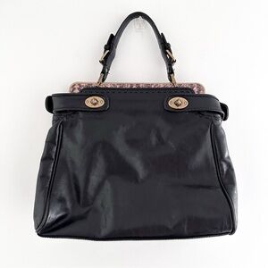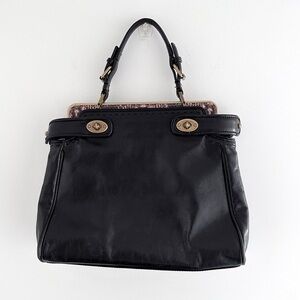 Elegant black satchel with sturdy handles. Features gold-tone hardware. Perfect for any occasion. Reposhed! Never used after buying. Two sided bag with twisting clasps.