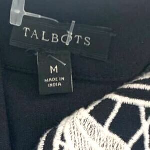 Talbots Size Medium Split Neck Shift Dress Cap Sleeve Embroidered Black Classy