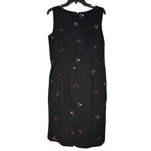 Talbots Black Sleeveless Sheath Dress with Pink Floral Embroidery Size 14