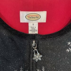 Talbots Black Sparkly Snowflake Christmas Holiday Zip Vest Women’s Sz Small Warm
