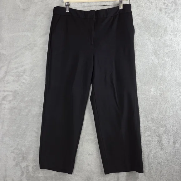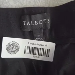 These Talbots trousers feature a sleek black color and a classic straight-leg design, perfect for both casual and business settings. The full-length cut is slightly cropped above the ankle, offering a modern touch to a timeless silhouette. Crafted from a smooth, lightweight fabric, these trousers provide comfort and style for everyday wear.