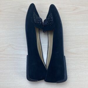 Talbots Black Suede Flats with Beaded Bow Size 6