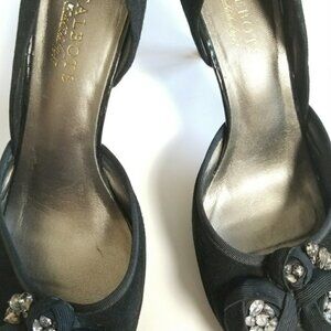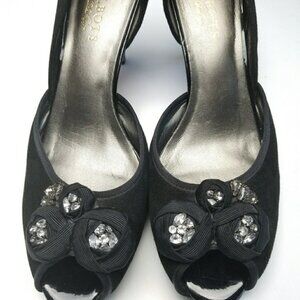 Talbots Black Suede Peep Toe Pump Beaded Toe Embellishment Size 9