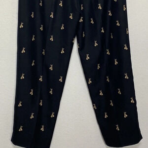Talbots Black & Tan High Rise 100% Silk Embroidered Ankle Length Trousers Sz 10