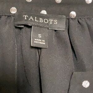 Elegant black top featuring white polka dots. Ideal for versatile styling.
