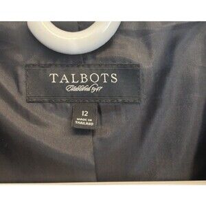 Elevate your professional wardrobe with the Talbots Black Tweed Blazer. Tailored for a regular fit, this size 12 jacket brings a touch of class to any business setting. Its 3/4 short sleeves and lightweight tweed fabric make it a comfortable yet stylish choice for those transitional months, suitable for fall, spring, and winter wear.