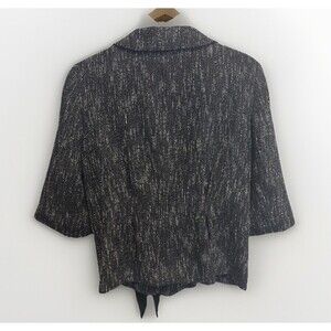 Talbots Black Tweed 3/4 Sleeve Blazer Jacket Ribbon-Tie-Front Career Work Sz 12